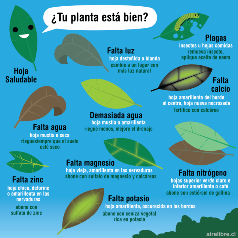 Las hojas dan señales cuando reciben poca luz, poca agua o cuando el suelo necesita más cuidado. Para cuidar el suelo,...